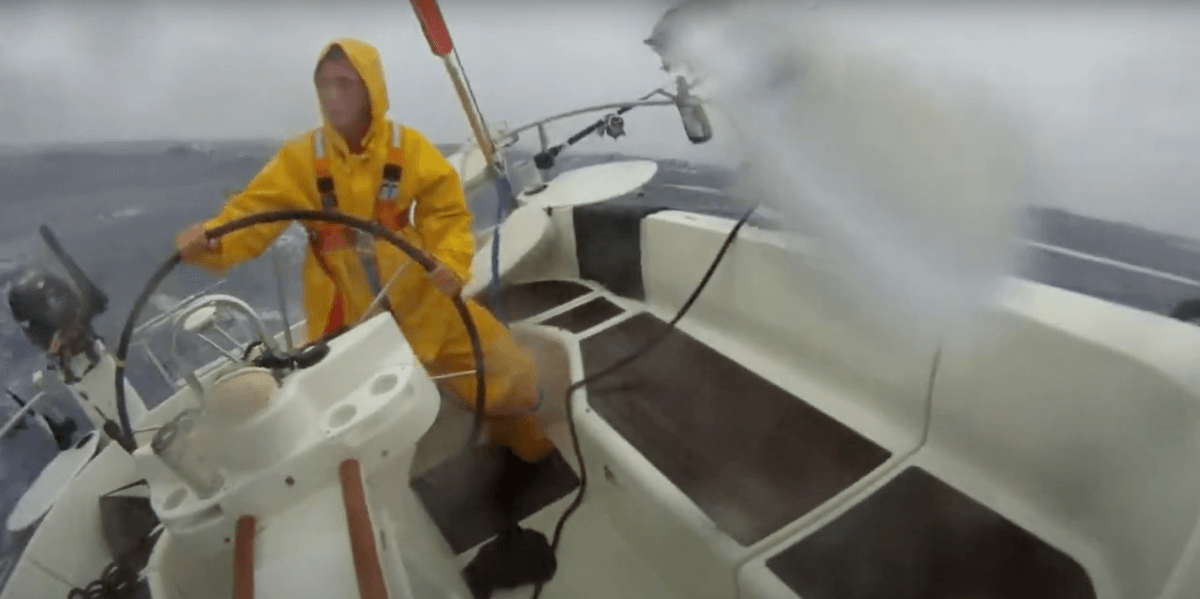 Check out this photo of me below manning the helm in the middle of a freaking cyclone.