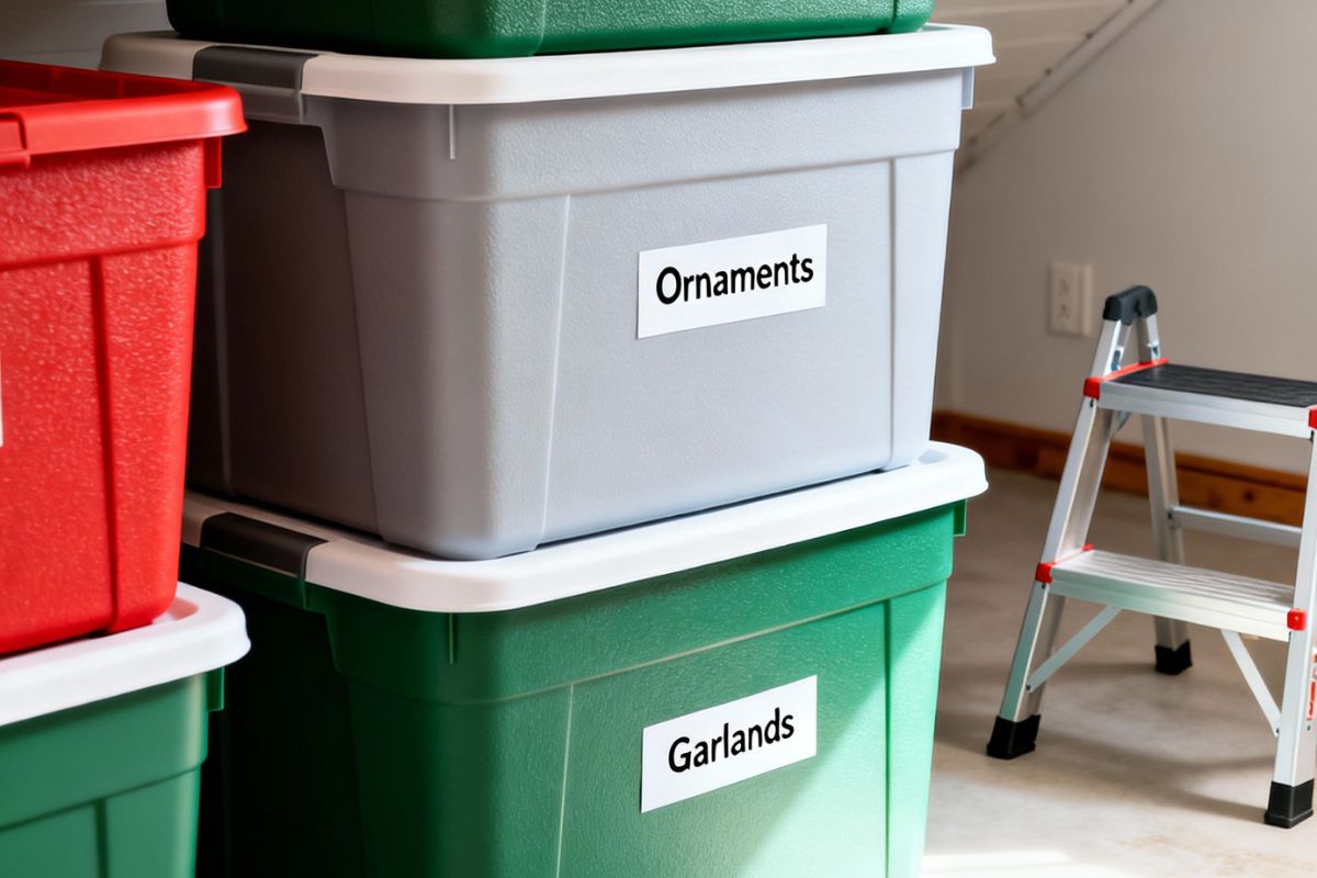Label storage bins by room or display area so next year’s setup is effortless.
