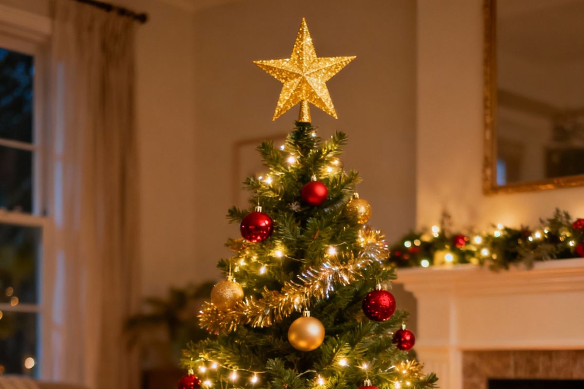 - Vintage glamour: tinsel garlands, champagne and antique gold hues, mercury-glass and faceted ornaments, crystal and pearl layers, starburst topper.