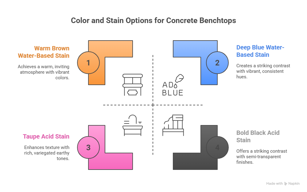 Acid stains, for instance, react chemically with the surface to produce rich, variegated colors. Water-based stains offer a broader palette and can achieve vibrant, consistent hues. Experimenting with these options lets you customize your kitchen's centerpiece while maintaining that sought-after industrial vibe.