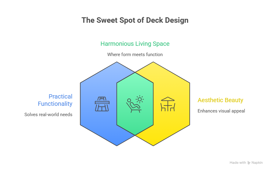 Smart designers also consider what you can't see. They plan for drainage that prevents water pooling, account for underground utilities, and ensure the deck height works seamlessly with existing doorways. These invisible decisions prevent frustration years down the line.