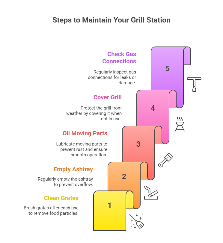 Maintaining your grill station is crucial to ensure that it stays in good condition and lasts for several years. Here are some tips to help you keep your grill station clean and well-maintained:
