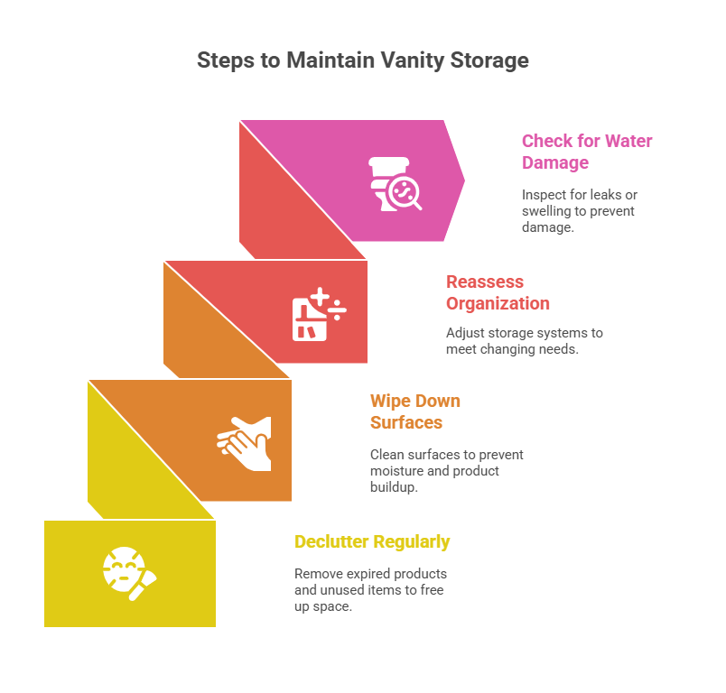 Invest time in planning your vanity storage needs before purchasing, and you'll enjoy the benefits of an organized, stress-free bathroom for years to come. With these strategies, even small bathrooms can offer ample, well-organized storage space.