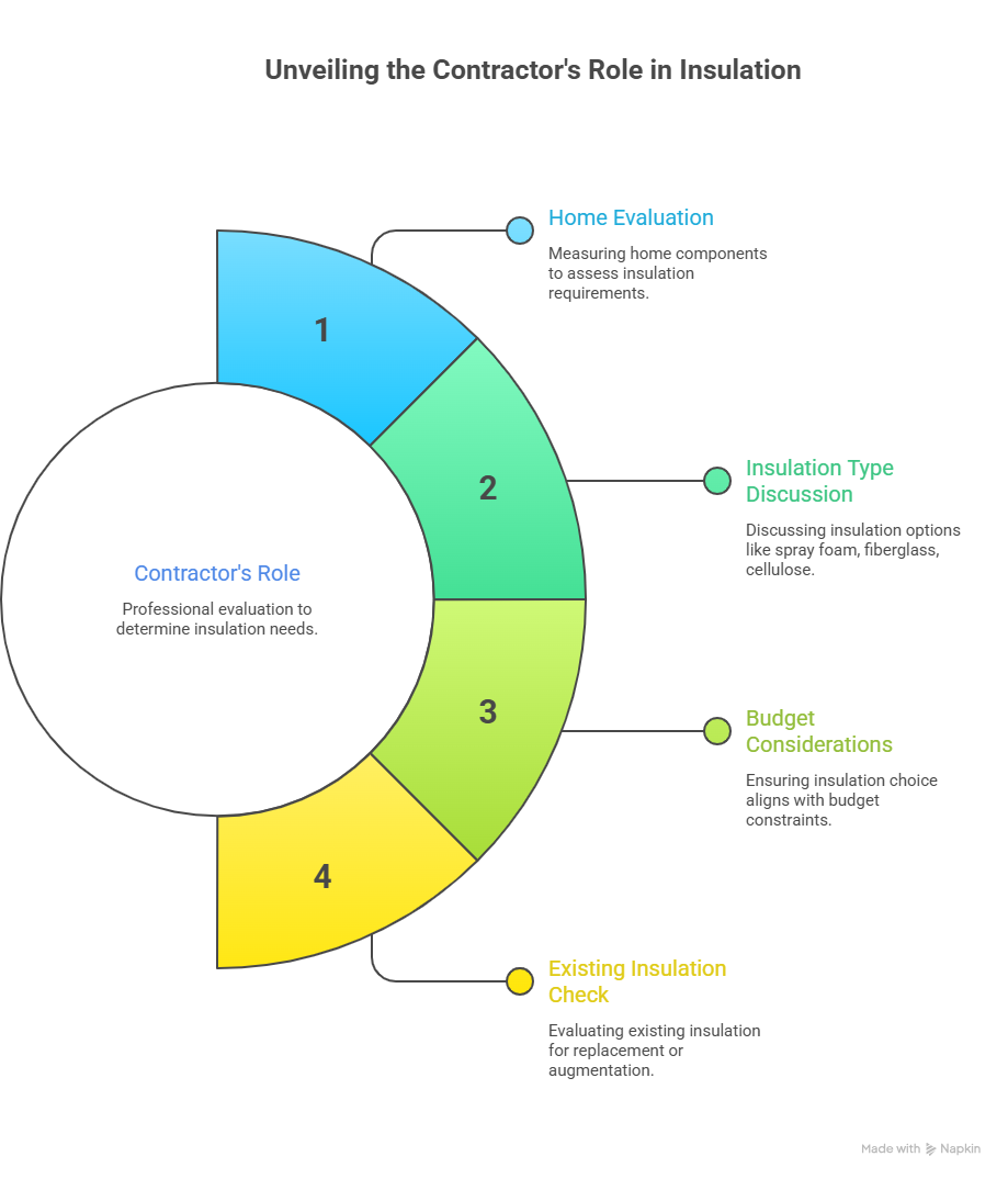 A professional contractor will evaluate your home to determine the type of insulation needed. This is an important part of the job and is the first step of the project. It will also ensure energy efficiency and cost savings. This involves measuring the walls, doors, windows, and other parts of your home to assess the type of insulation your home needs for best results.