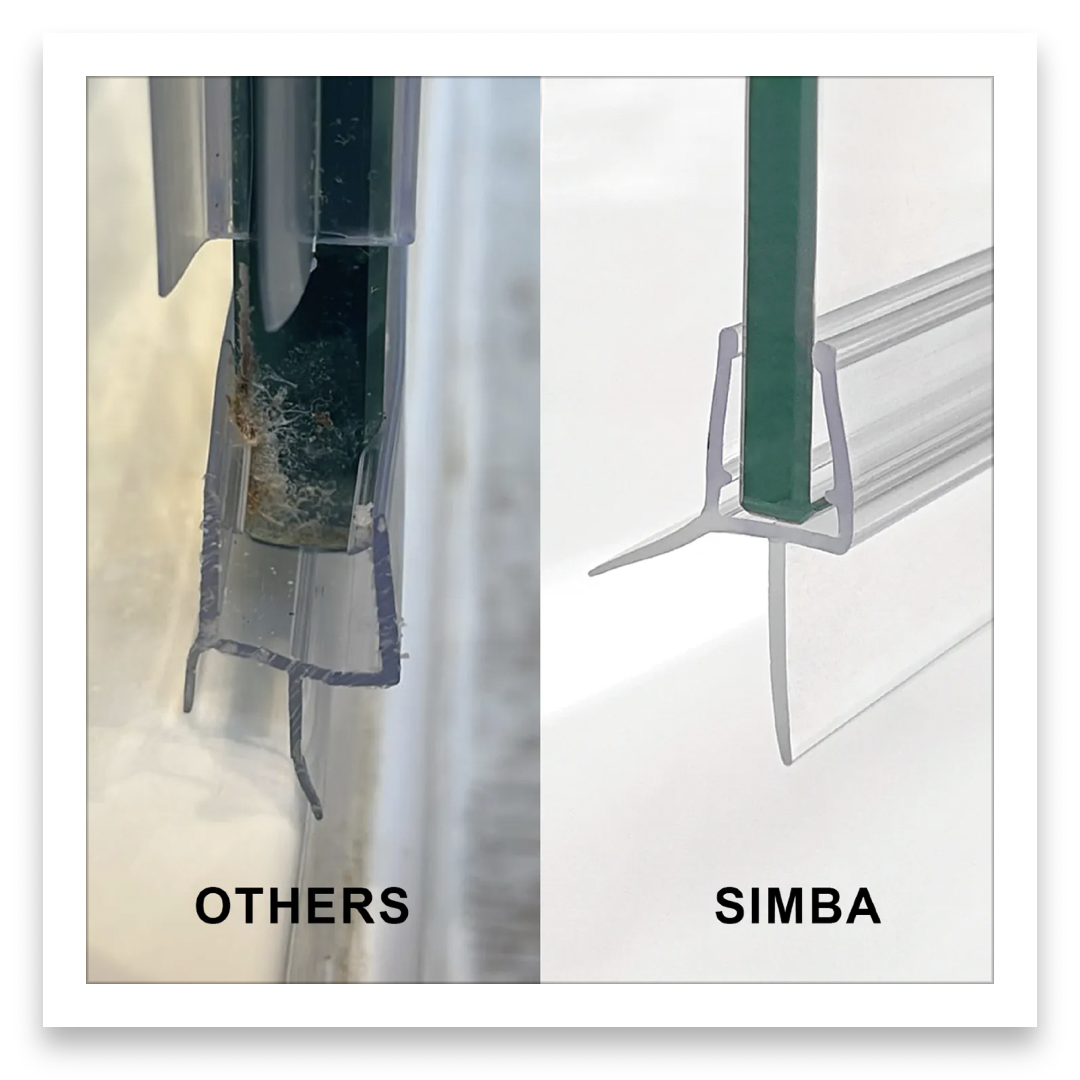 These high-performance components utilize 100% virgin, UV-resistant PVC. By employing a dual-material design—a rigid "spine" for secure glass attachment and soft, flexible fins for water deflection—they provide the precision required to prevent capillary action from drawing water outside the shower zone.