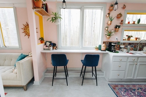 Like pink walls and Spanish tiles and lots of plants. AND you can have two bedrooms that fit