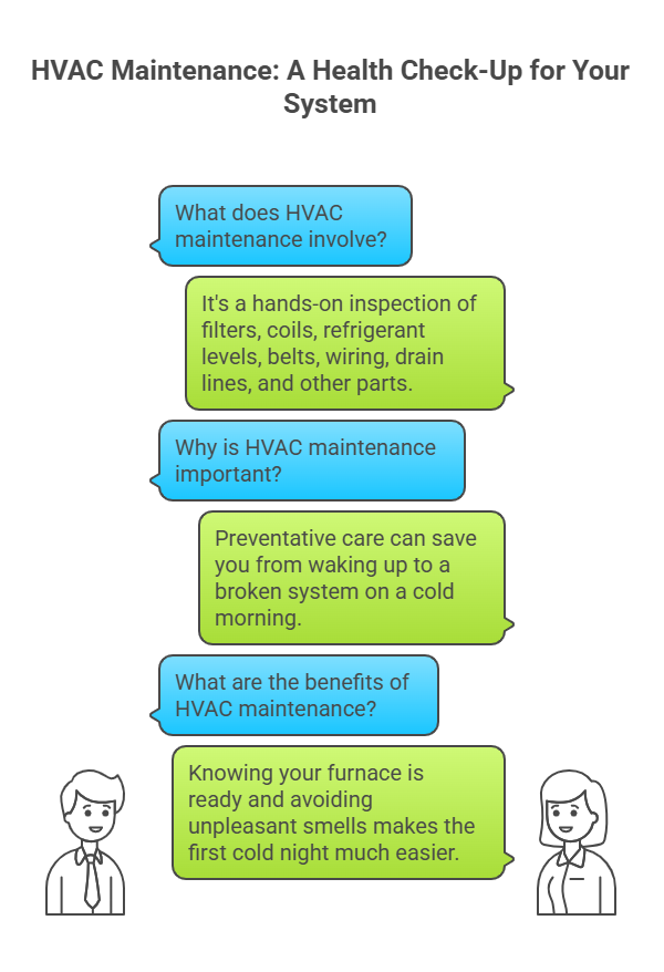 Here’s the thing: HVAC maintenance isn’t about some vague checklist—it’s a real, hands-on inspection. Technicians look at filters, coils, refrigerant levels, belts, wiring, drain lines, and all the parts that quietly keep your house comfortable.